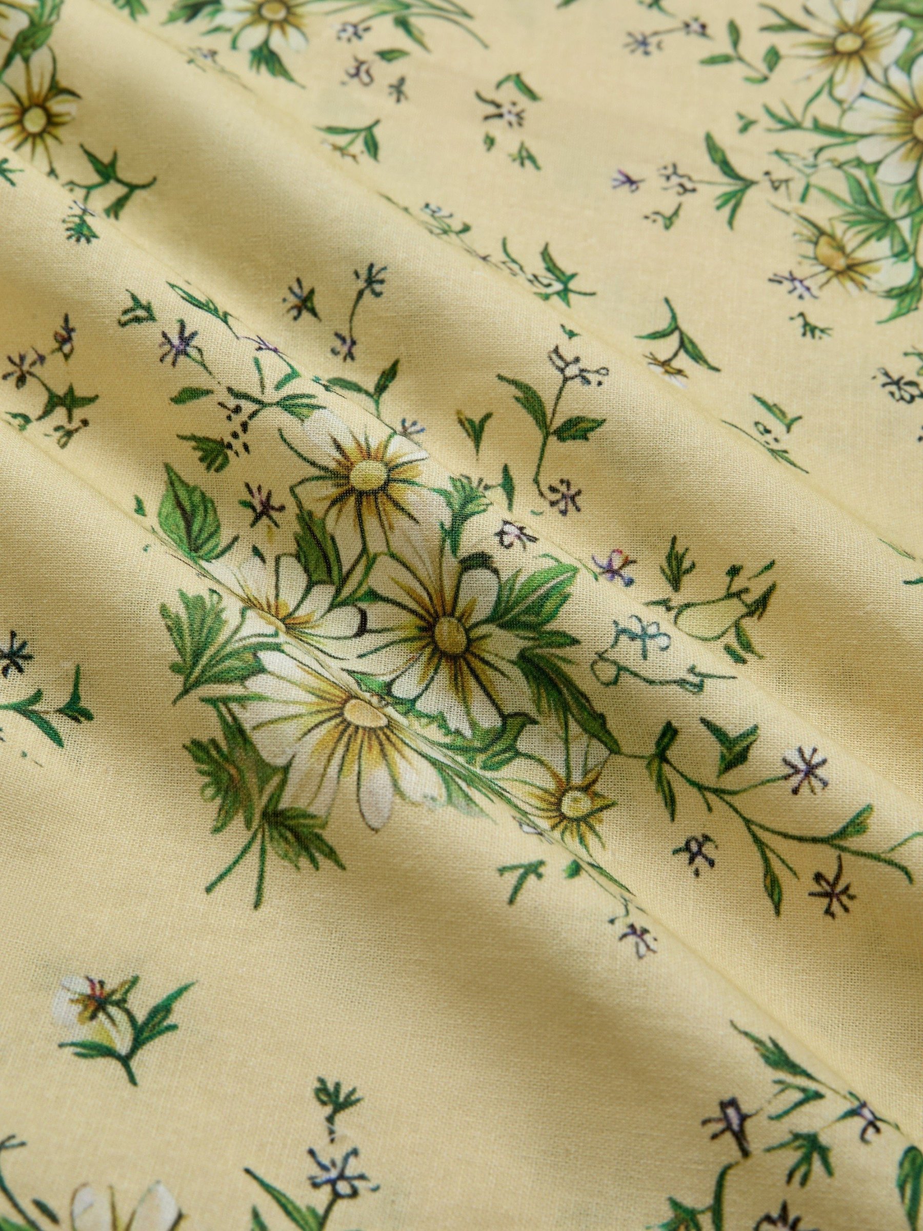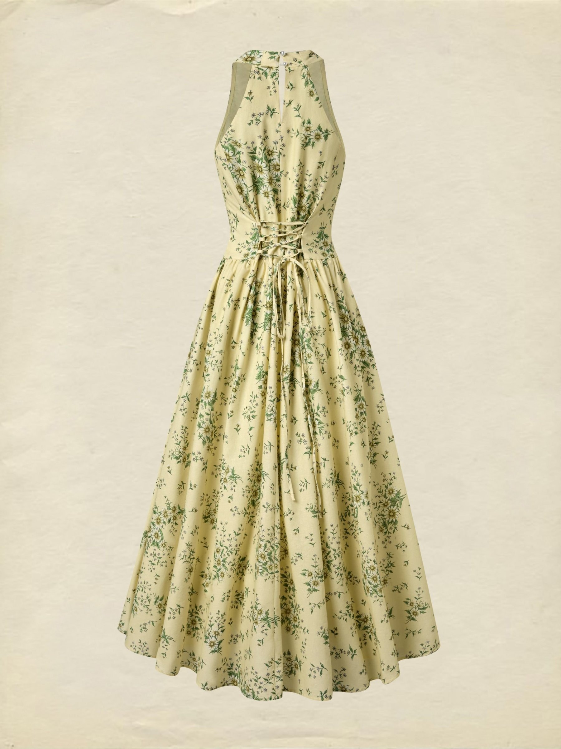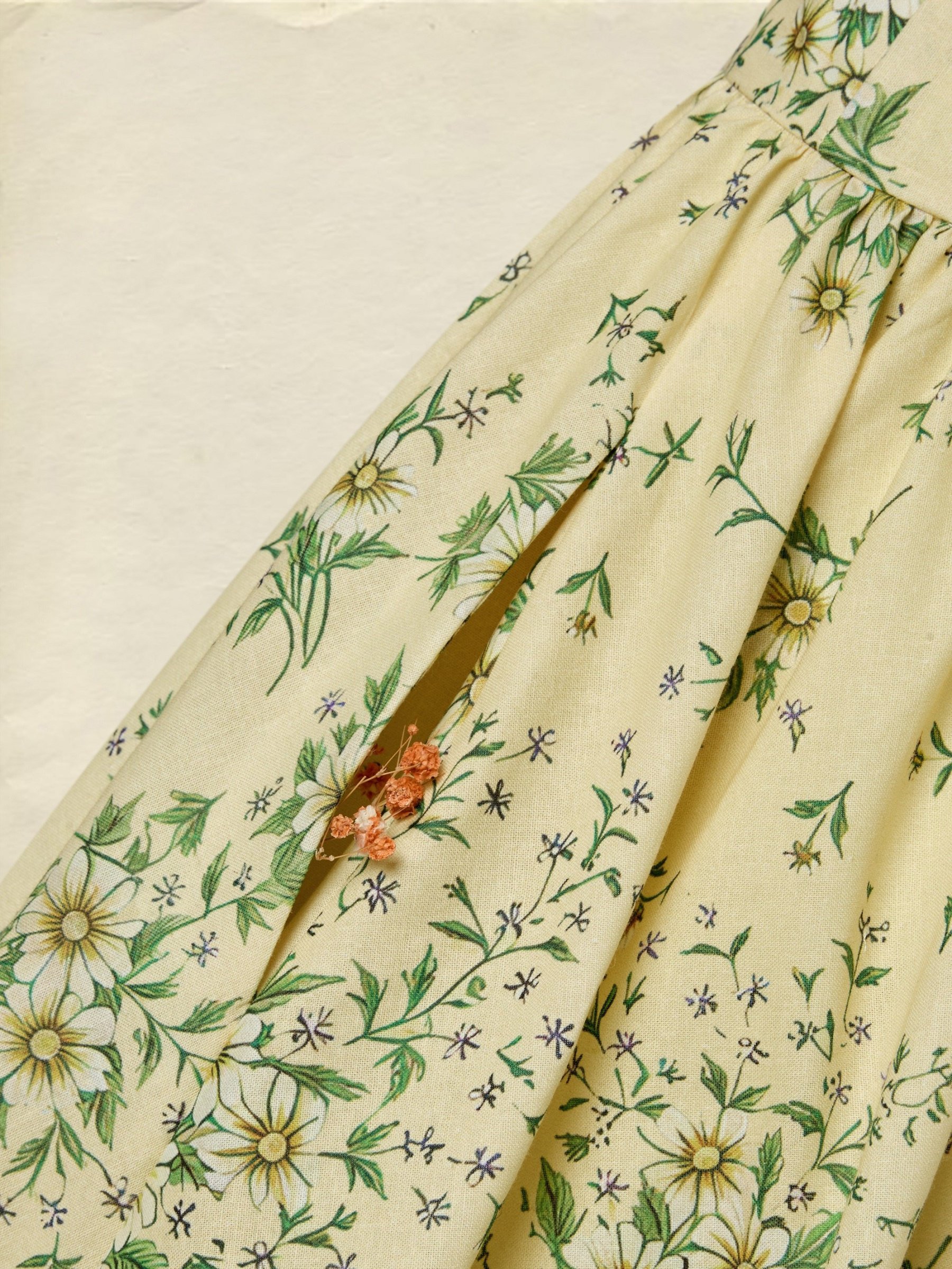 Maxi Cotton Dress, Sleeveless, V Neck, Floral, 3D Floral (Detachable), Vacation, Vintage, Yellow