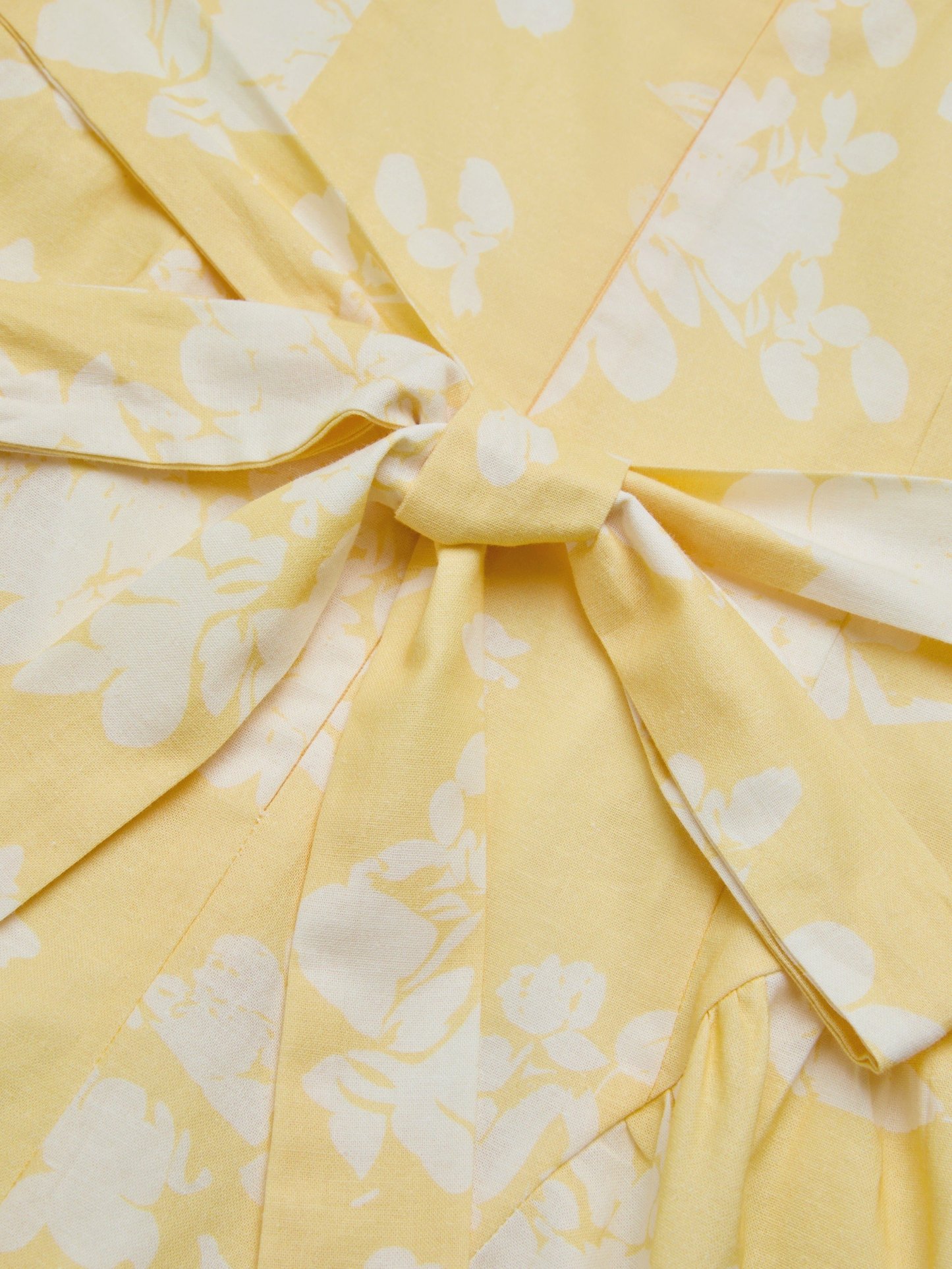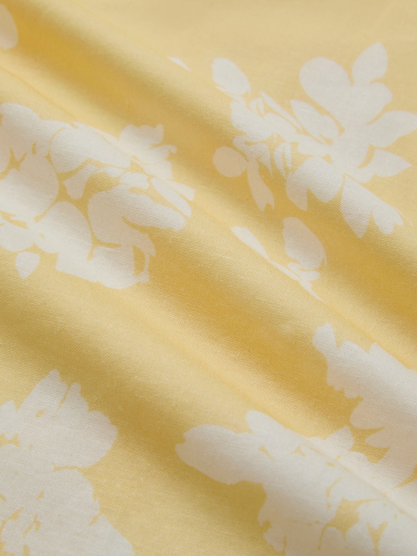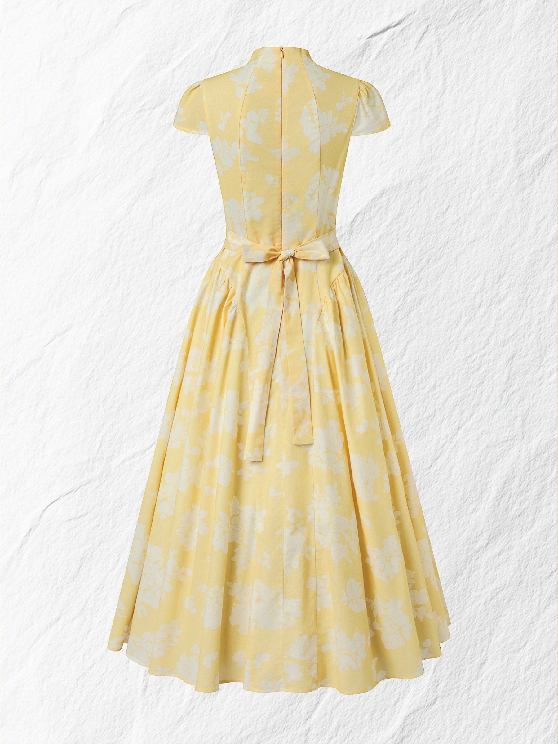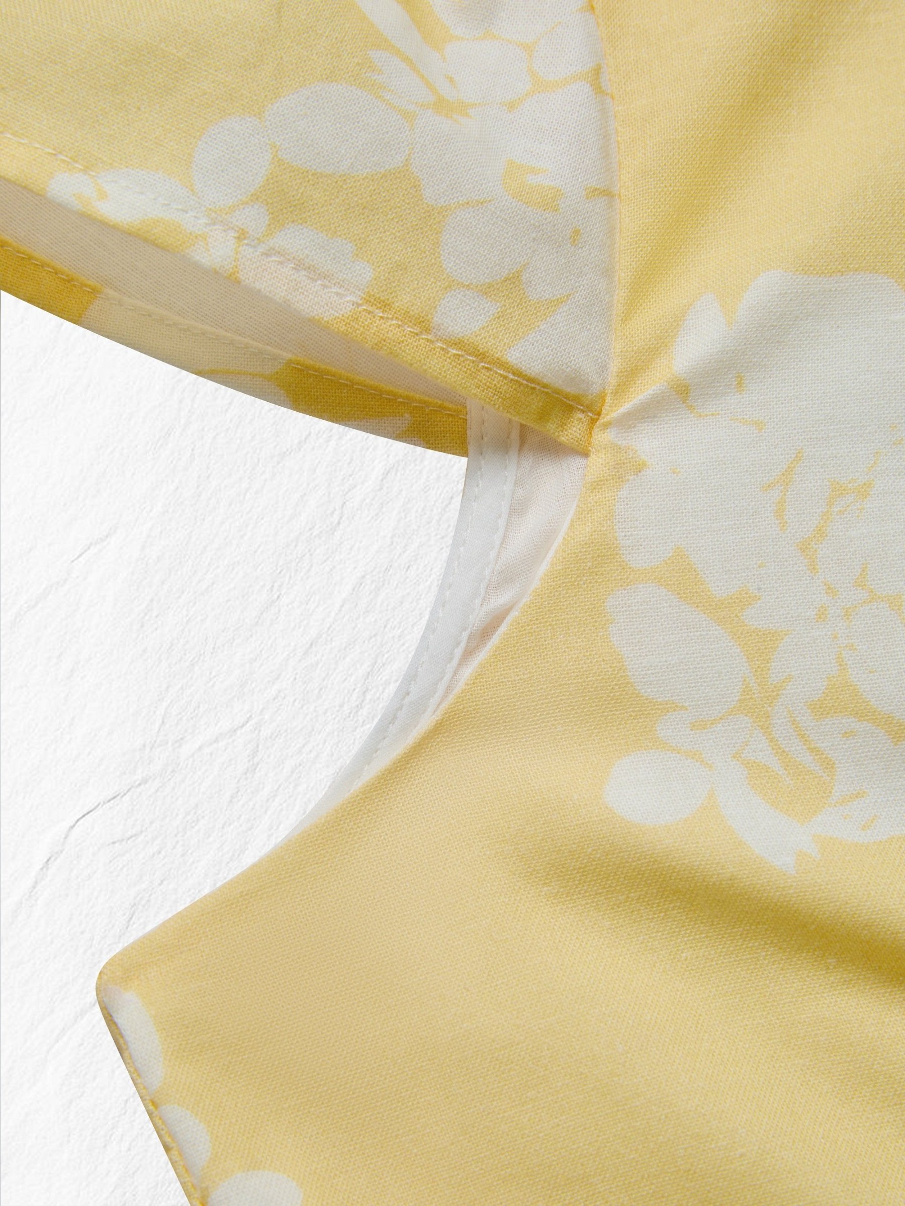 Midi Cotton Dress, Short Sleeves, Floral, French Vintage, Yellow