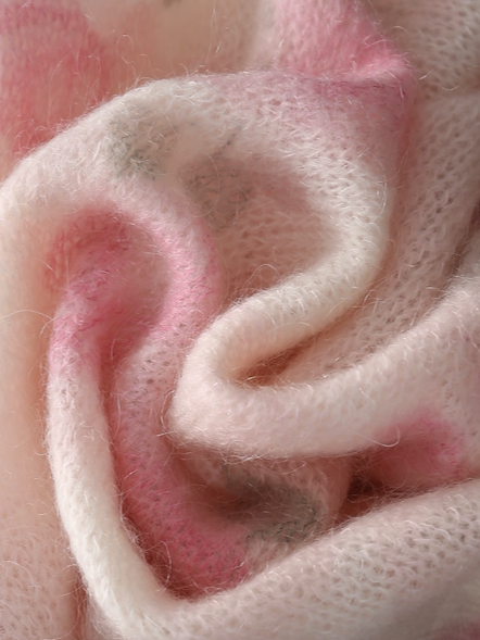 Cashmere Cardigan, Long Sleeves, V Neck, Floral, Button Design, Vintage, Pink