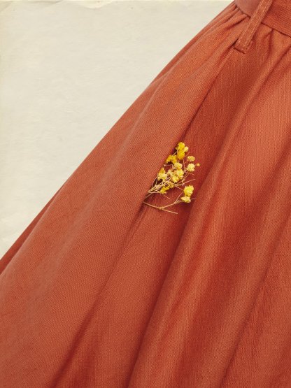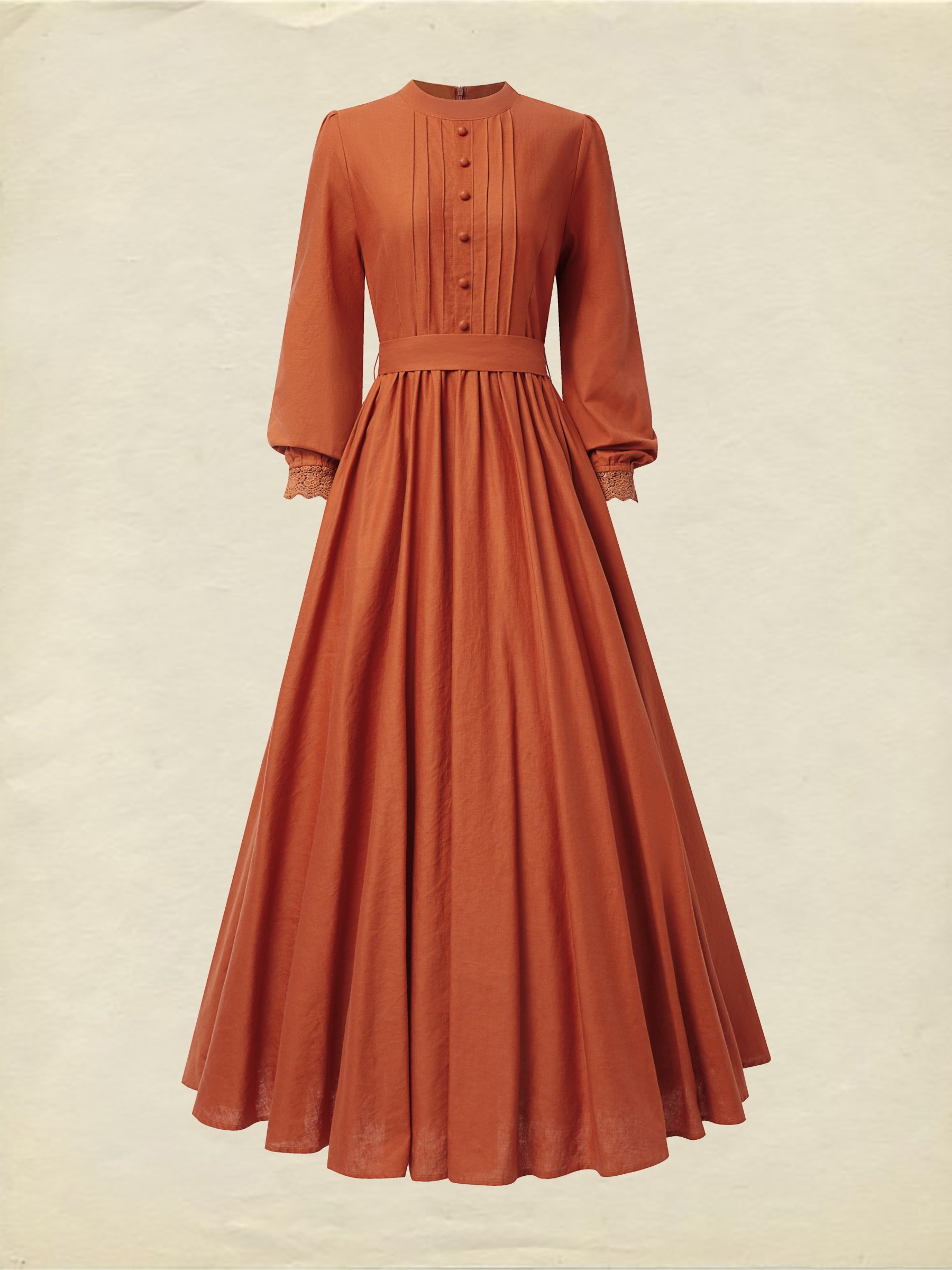 Maxi Linen Dress, Long Sleeves, Stand Collar, Shirt Dress, Linen Blend, Orange
