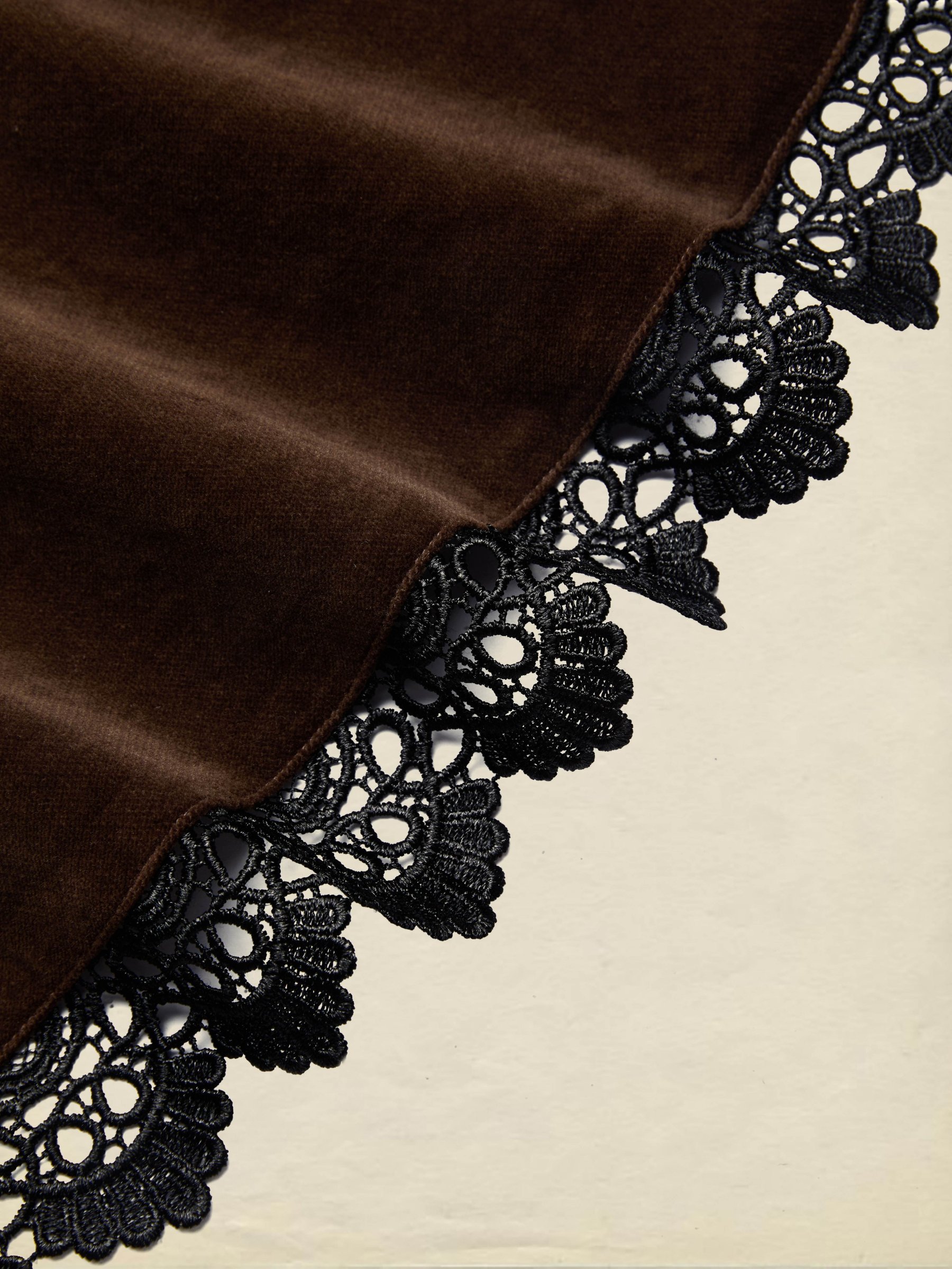 Midi Cotton Dress, Half Sleeve, Lapel Collar, Plain, Lace, Vintage, Coffee