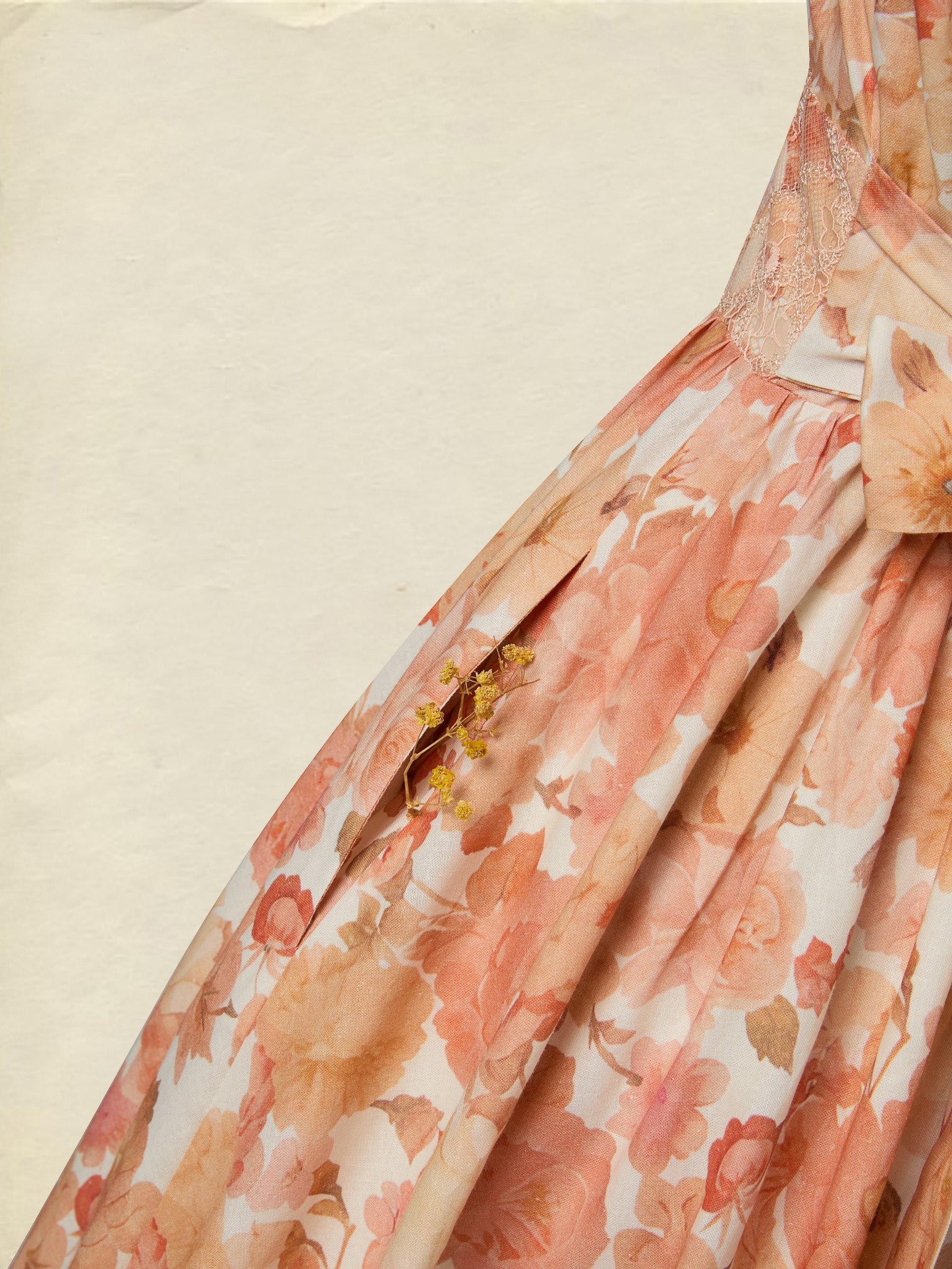 Maxi Linen Dress, Sleeveless, V Neck, Floral, Lace, Vacation, Vintage, Light Orange