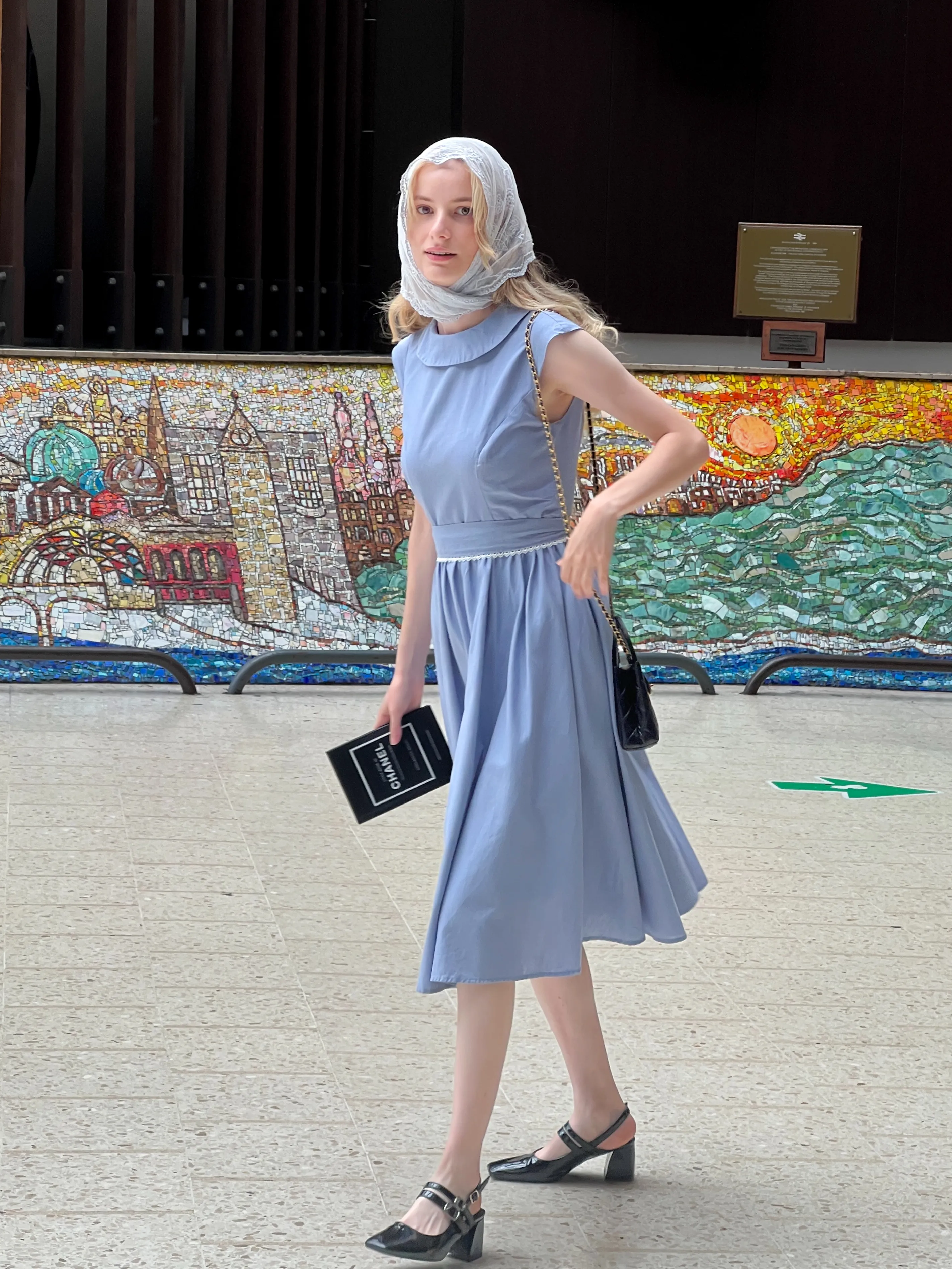 | This dress draws inspiration from Audrey Hepburn’s elegance. The clean, sleeveless cut pairs with a full skirt to create a vintage and bold silhouette. The sleeveless design shows a sharp shoulder line, while the flowing skirt moves gracefully, capturing Hepburn’s iconic poise and elegant lines. |