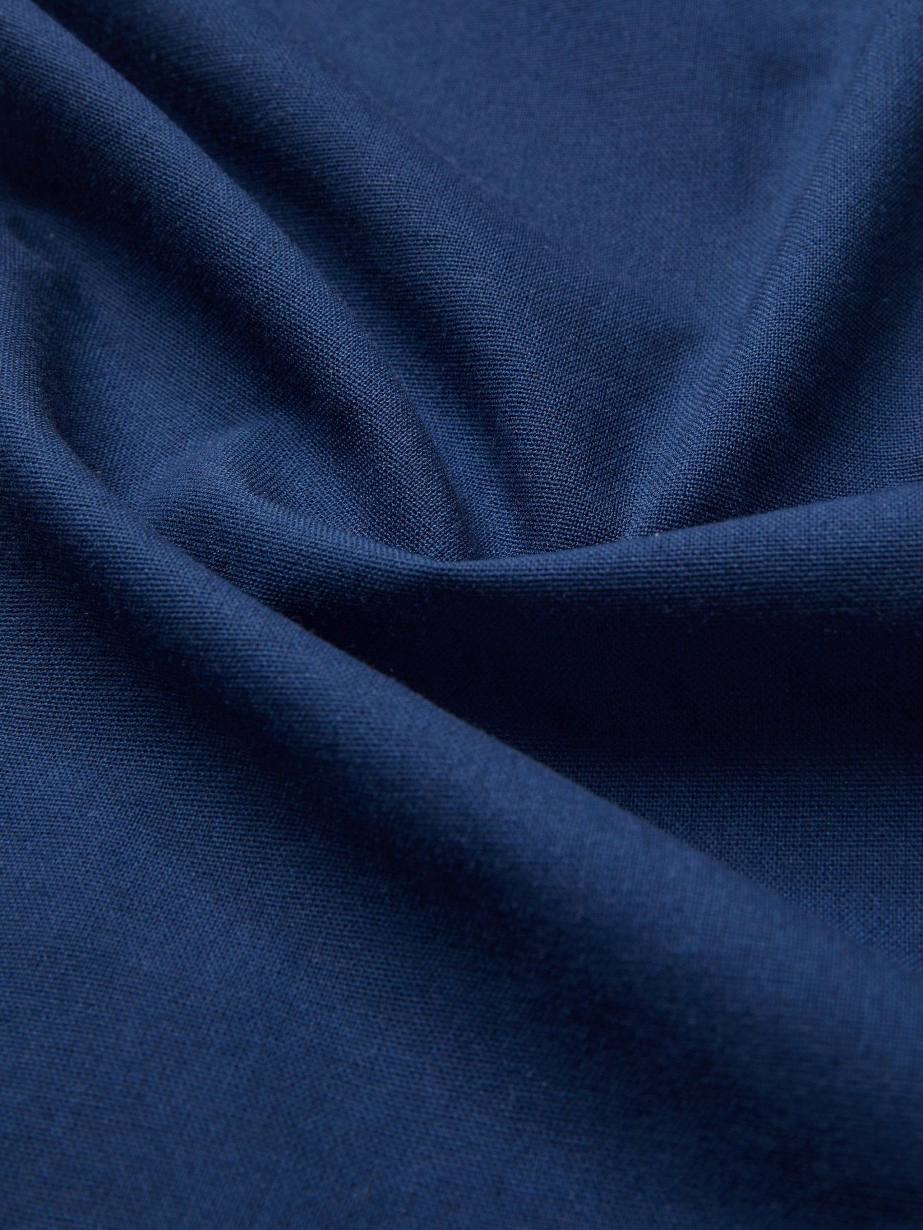 Midi Linen Dress, Half Sleeve, Shawl Collar, Plain, Button Design, Vintage, Dark Blue