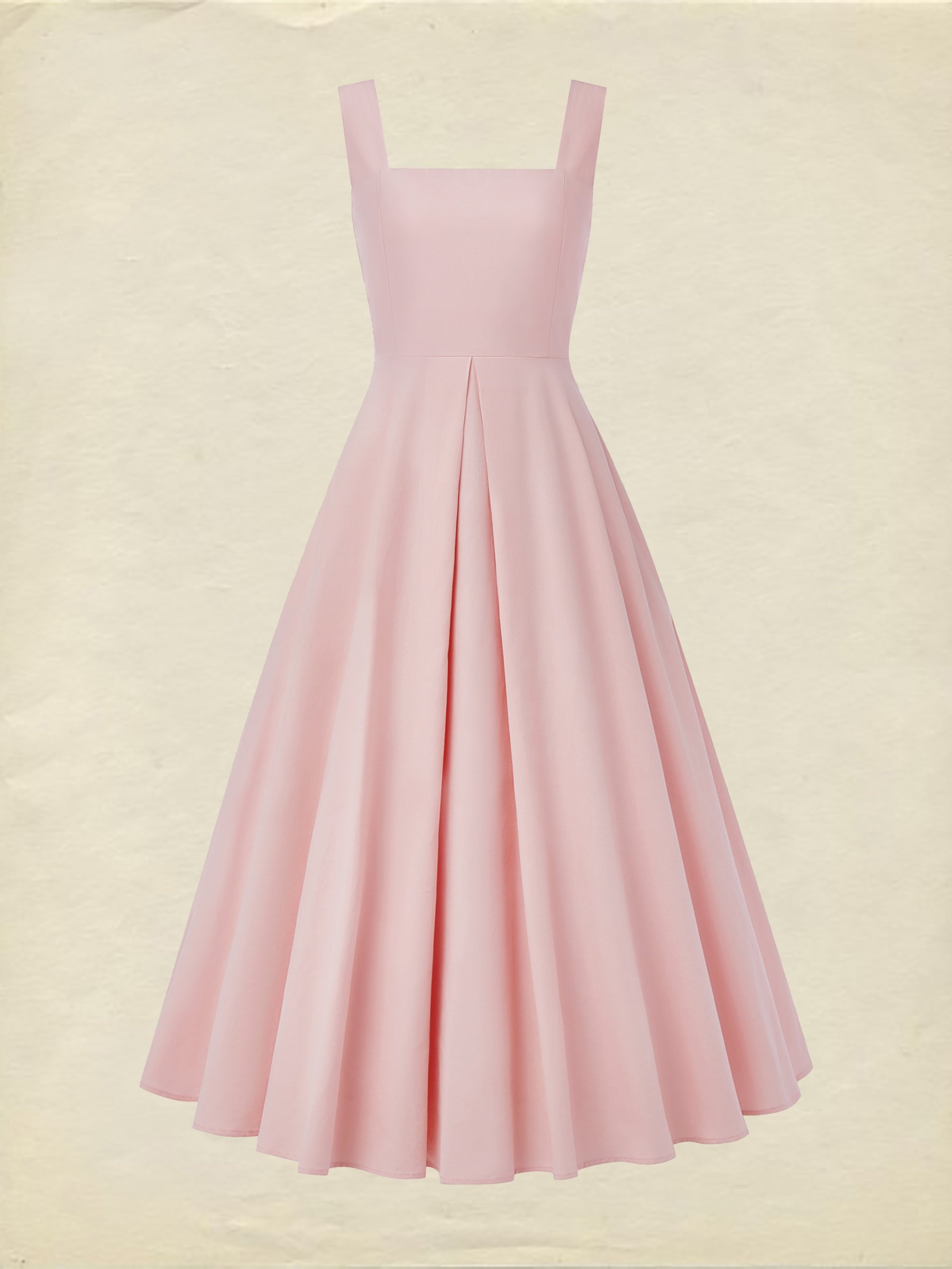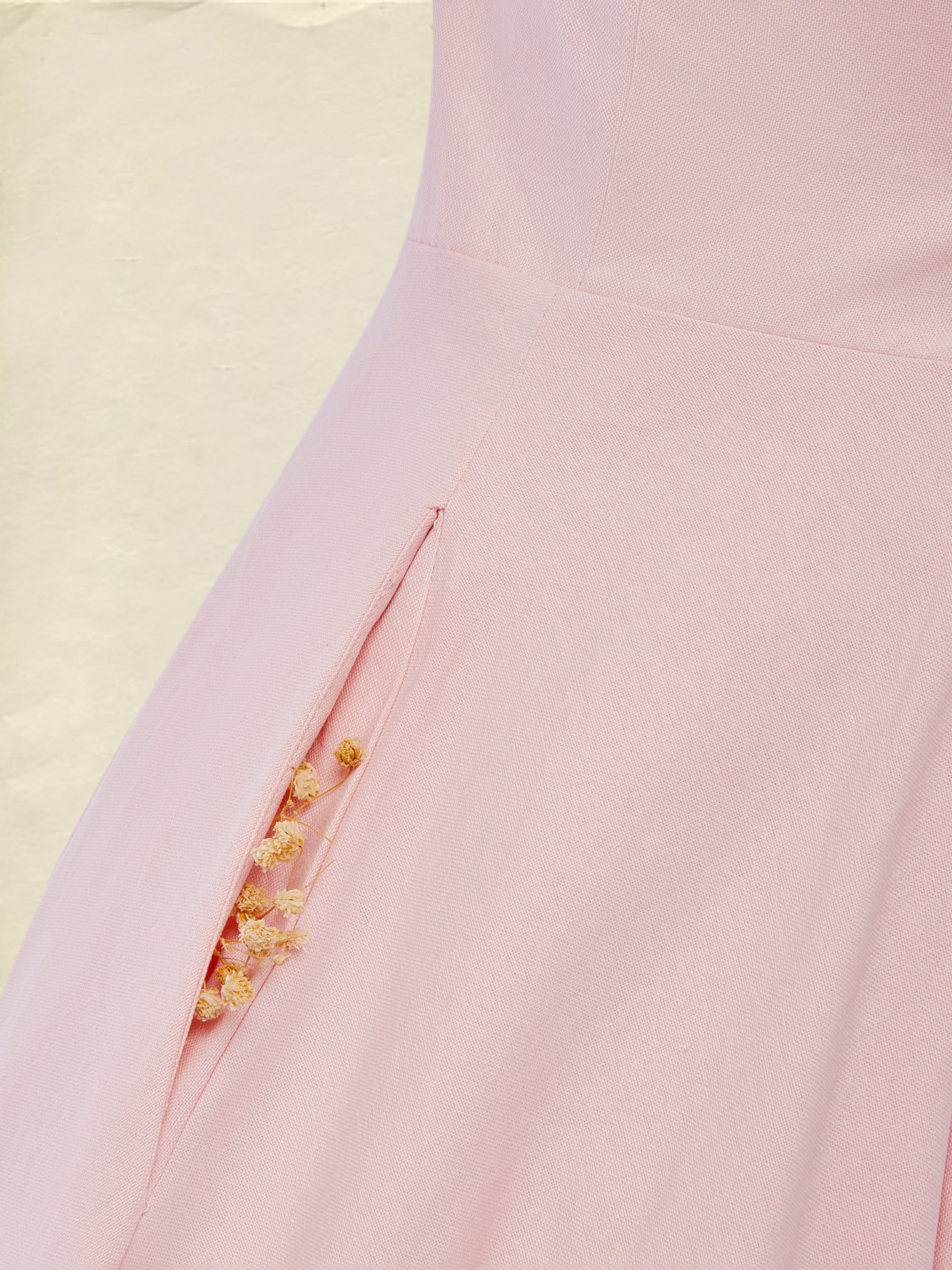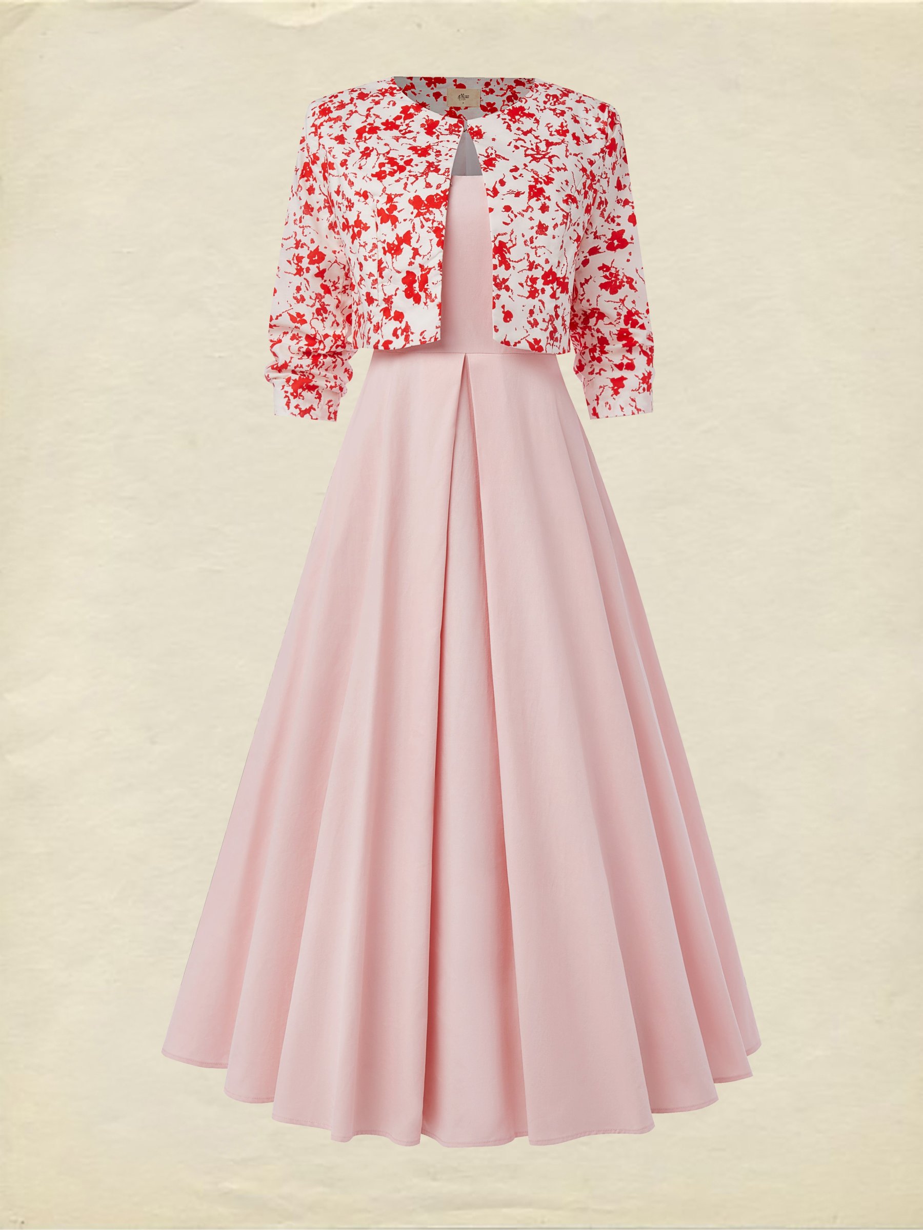 Maxi Cotton Dress Set, Half Sleeve, Round Neck, Floral, Pocket Design, French Vintage, Light Pink
