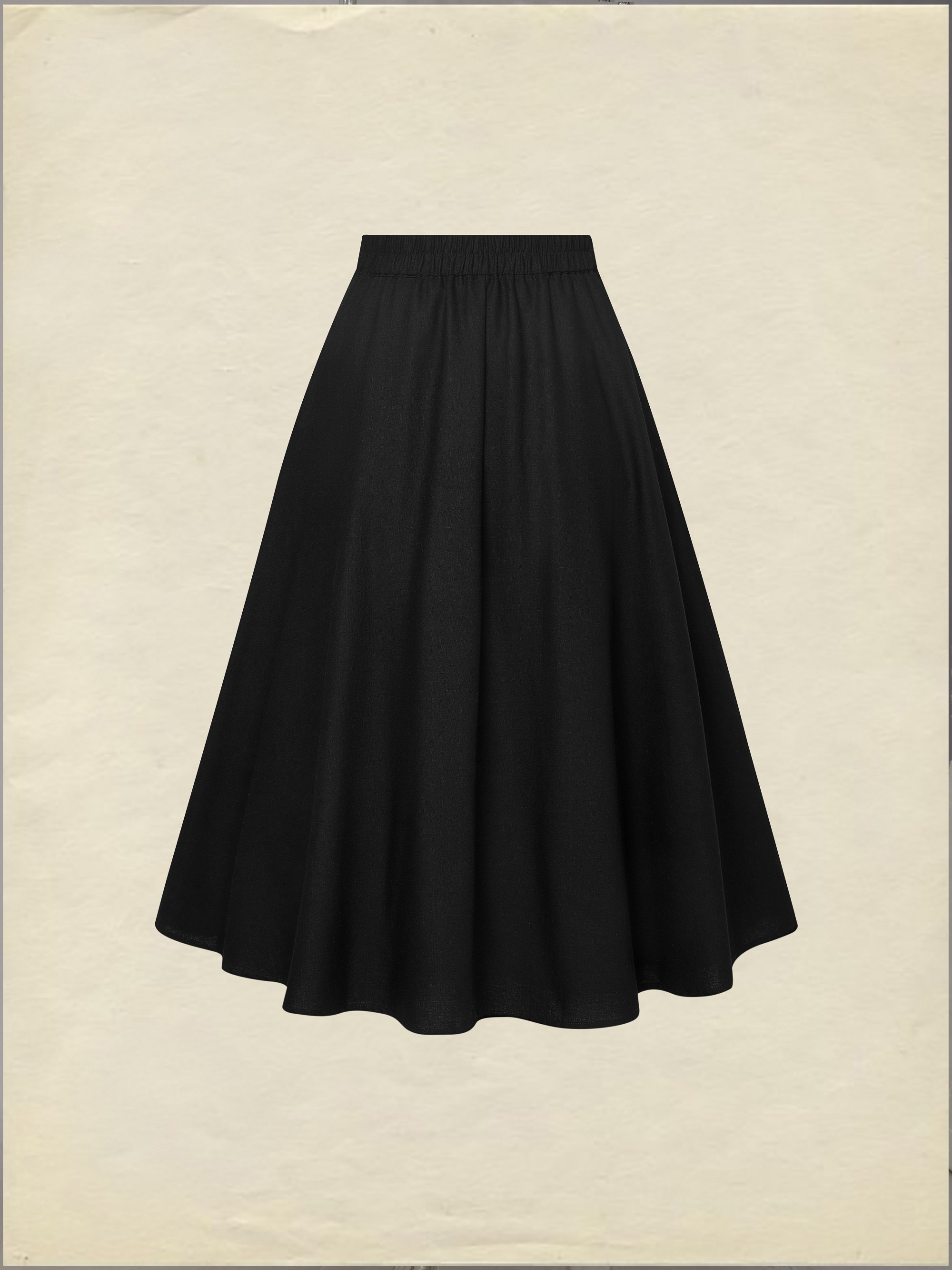 Midi Linen Skirt Set, Long Sleeves, Lapel Collar, Plain, Button Design, Vintage, White